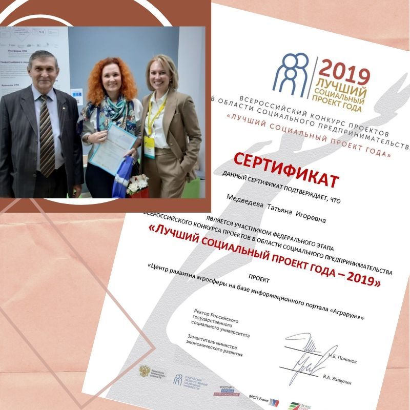Руководитель компании «Аграрум» Татьяна Медведева награждена оргкомитетом Всероссийского конкурса проектов в области социального предпринимательства «Лучший социальный проект года – 2019».