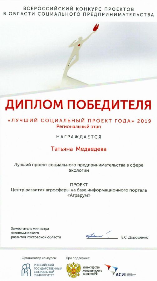 Компания "Аграрум" стала победителем в региональном этапе Всероссийского конкурса проектов в области социального предпринимательства!